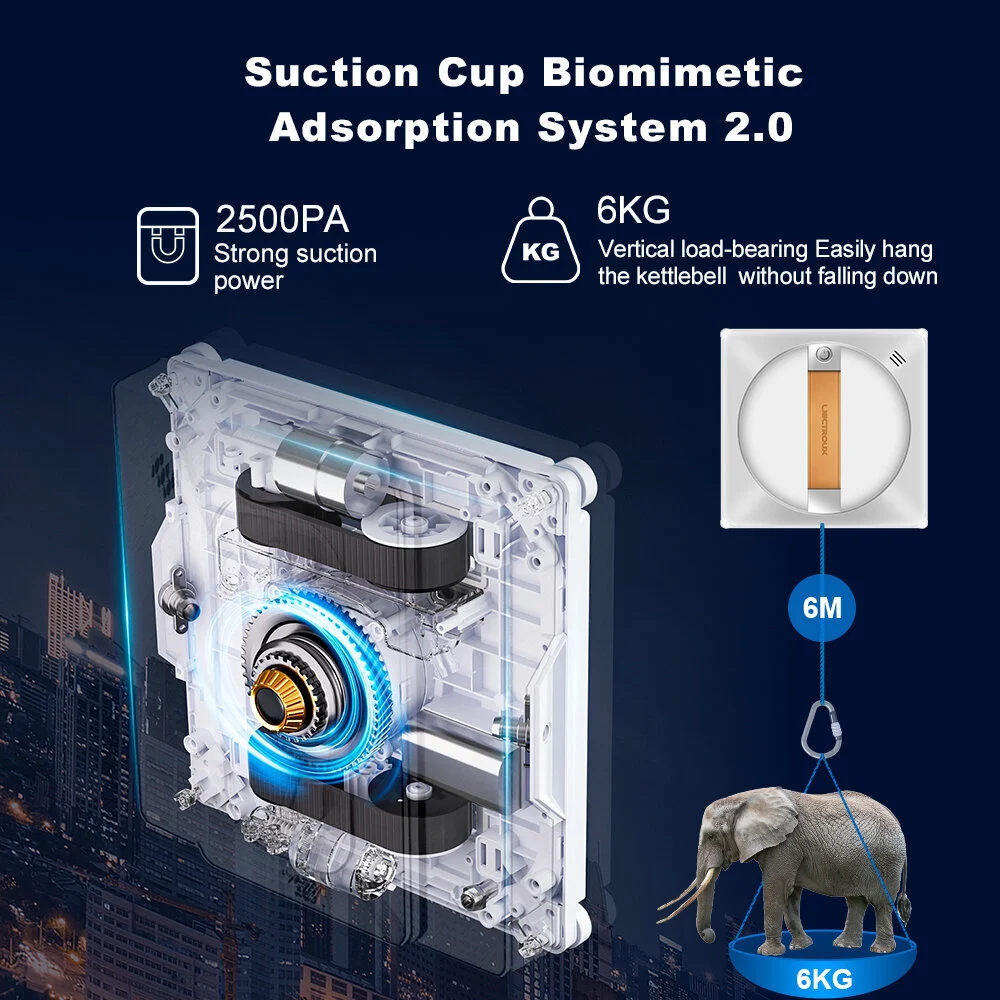 Robot kinnitub klaasile kindlalt ja liigub turvaliselt ka vertikaalsetel pindadel, vähendades kukkumise või vigastuse riski.